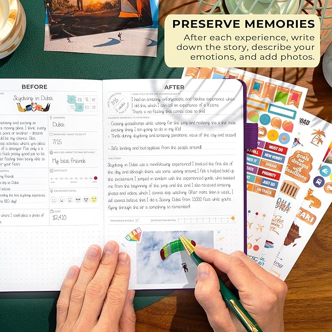 - CREATE MEMORIES THAT WILL LAST A LIFETIME: A unique feature of this bucket book is its 2 detailed “Before” and “After” pages. The “Before” page will help you plan your adventure in detail. The “After” page will help you preserve every precious memory.