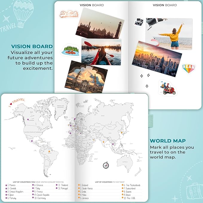 - ESCAPE THE ROUTINE & MAKE EVERYDAY COUNT: The journal begins with 300 bucket list ideas from all over the world to help you dream big. Next, there is an empty bucket list with 100 entries to fill out, a vision board, and a map to plan your adventures.