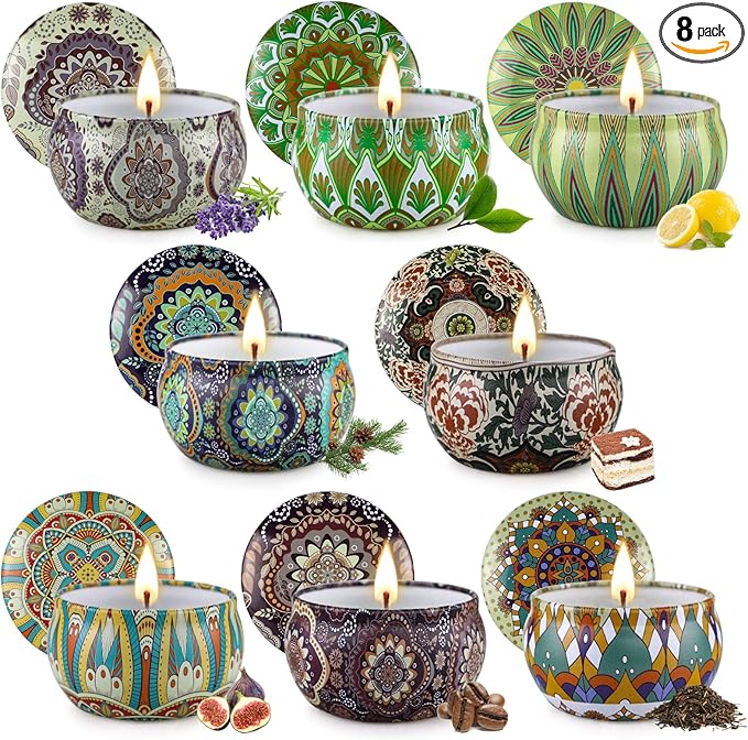 Scented Candles Set, 8 Pack Aromatherapy Candle, Stress Relief & Body Relaxation, 160H Burning, Portable Travel Tin, Candles for Home Scented, Ideal for Yoga, Meditation, Bath, Valentines Day Gifts