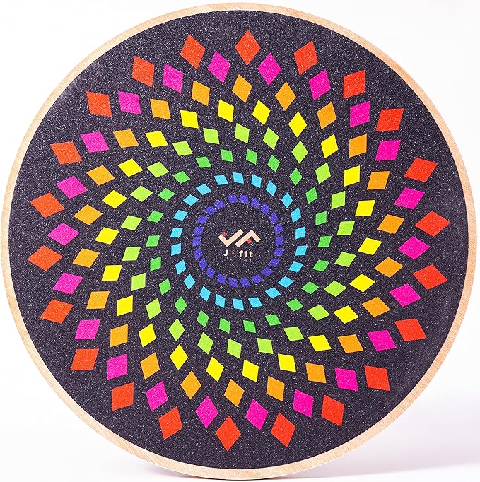 - SUPERIOR BALANCE BOARD: This wobble board by JFIT is made with sturdy, premium wood and a slip-resistant skid pad, and is large enough to support two feet and up to 300 pounds, and it is compact and portable