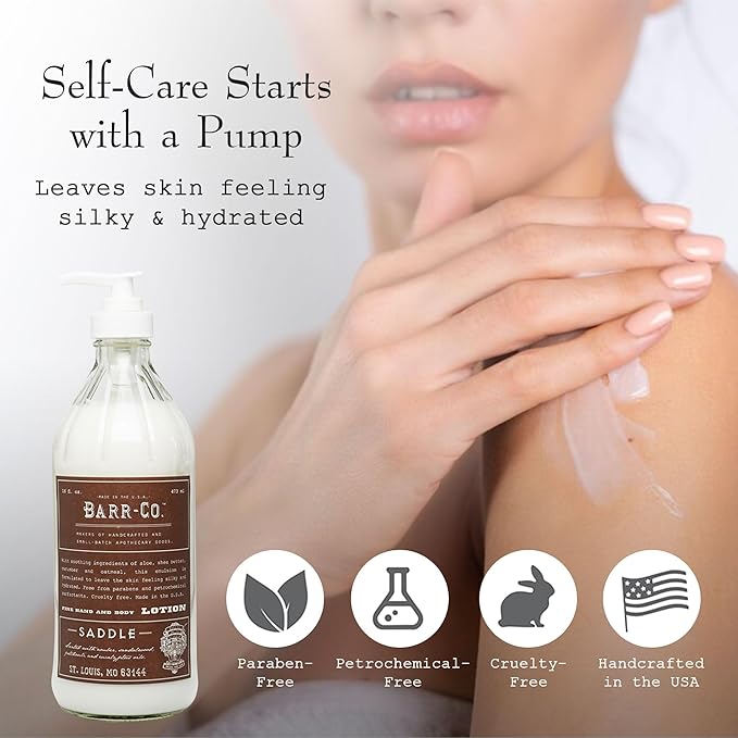 BARR-CO. Saddle Scent Shea Butter Lotion, Amber Scent with Sandalwood & Musk, Shea Moisturizing Lotion for Sensitive Skin, 16 fl oz