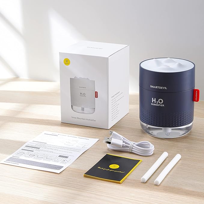 SmartDevil Small Humidifiers, 500ml Desk Humidifiers, Whisper-Quiet Operation, Night Light Function, Two Spray Modes, Auto Shut-Off for Bedroom, Babies Room, Office, Home (Dark Blue)