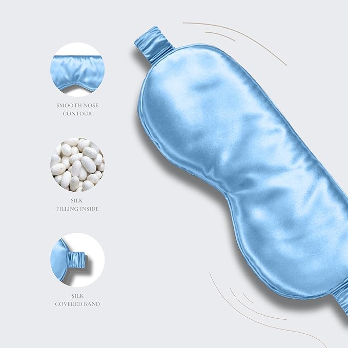 Silk Sleep Mask - 100% Pure 22 Momme Mulberry Silk Eye Sleeping Mask for Women and Men - Blackout Eye Mask for Sleeping (Blue)