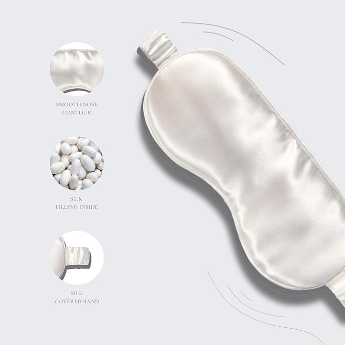 Silk Sleep Mask - 100% Pure 22 Momme Mulberry Silk Eye Sleeping Mask for Women and Men - Blackout Eye Mask for Sleeping (White)