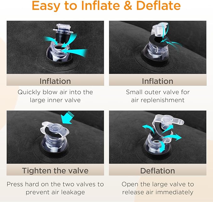 - Oversize Dual-Valve Design: The inflatable foot rest airplane is designed with extra large dual-valve, which makes it more leak-proof than similar competitors. Inner large valve for quick inflation/deflation and an outer valve for easy air refills.