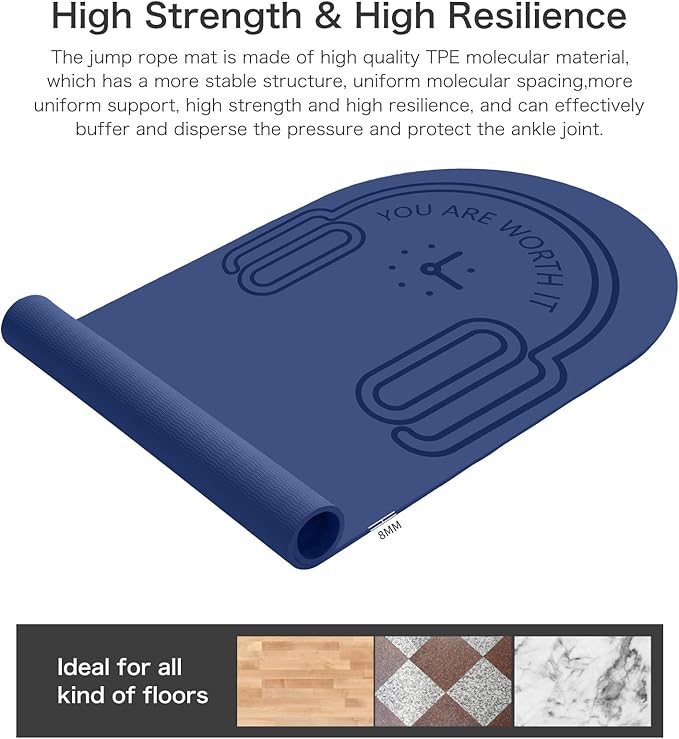 8/20/30mm Jump Rope Mat Fitness Exercise Mat Durable, Non-Slip, Workout Mats with Jump Rope & Carrying Bag for Home Gym Flooring (55"x 24")