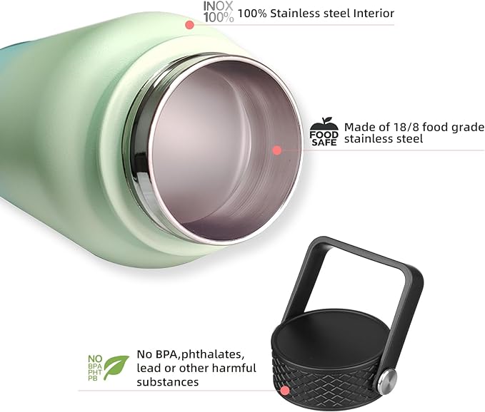 - The travel water bottle with handle is easy to carry. Whether you're at the office or out and about, this thermos bottle is the perfect accessory to complement any outfit