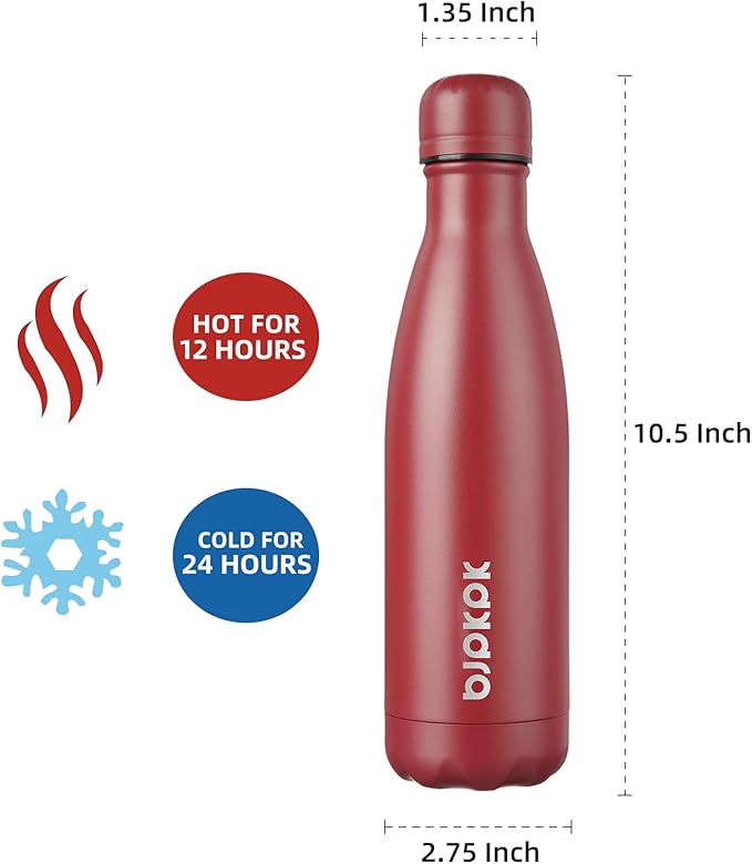 BJPKPK 17oz Insulated Stainless Steel Water Bottles,Sports Water Bottles Keep Cold for 24 Hours and Hot for 12 Hours,BPA Free for Travel,Brick Red