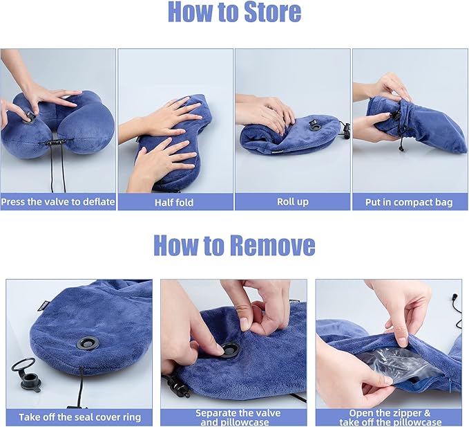 - Adjustable Firmness: inflatable neck pillow with a valve, no need air pump, valve is easy to open/close, adjust the neck firmness and support level by increasing/decreasing air. Easily pressing the spring button in the air valve to fast deflate