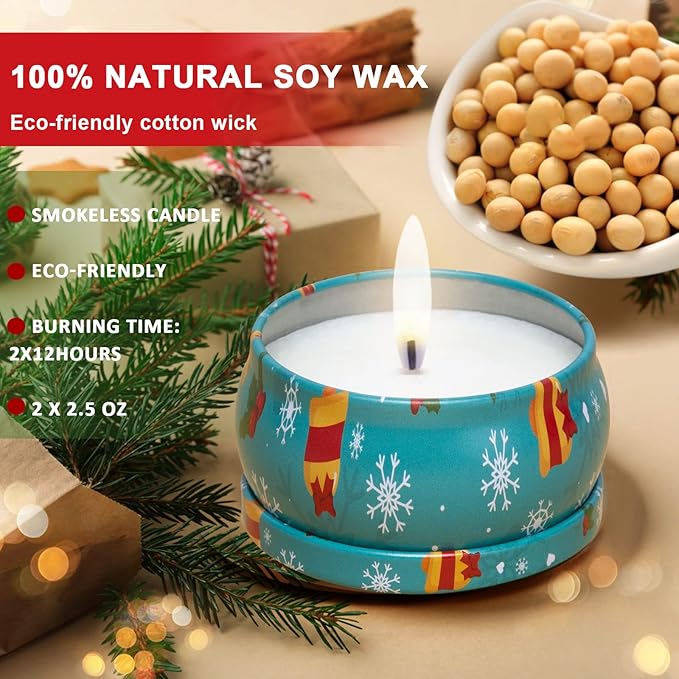 - Long-lasting: 2.5 oz each christmas candle lasts 12 hours, a total of 24 hours of combustion. Compact size but long-lasting burning can reduce your stress and will uplift anyone's mood.