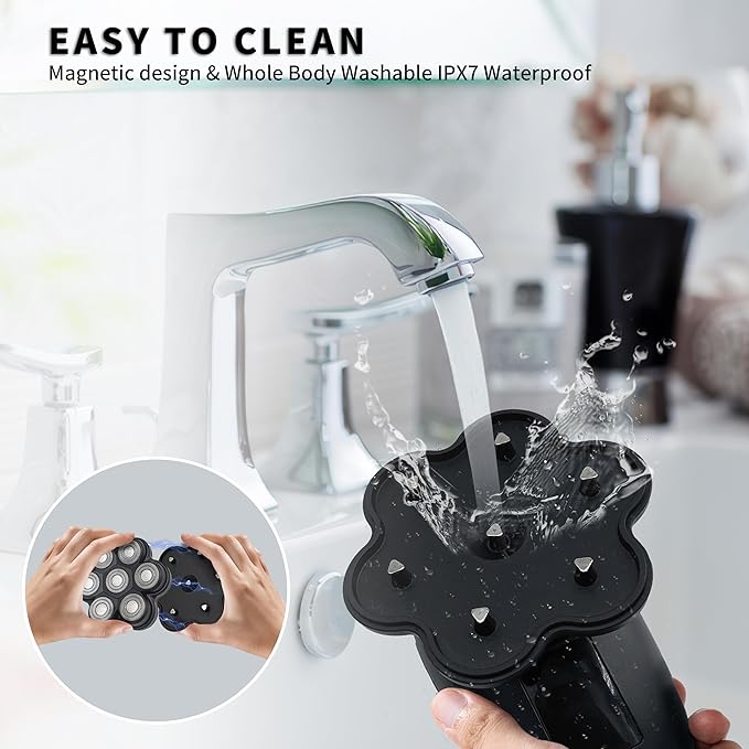 - [WATER RESISTANT] UPTARD electric razor grooming kit has a washable and shower friendly feature with IPX5 water resistance technology which allows it to use for comfortable dry shaving or refreshing wet shaving, with and without shaving cream, gel or foam. Our electric head shavers for men are easy to disassemble and easy to clean which can directly be cleaned under the running water so they will be ready for the next usage.