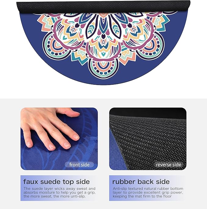 - Material: Keolorn yoga mat is made of natural rubber and suede. This suede yoga meditation mat has a diameter of 55" (140cm). The extra-large round mat is made of non-toxic and environmentally friendly natural rubber. The thickness of 3.5mm protects sports People are less likely to be injured during exercise, and relieve joint pain during exercise.