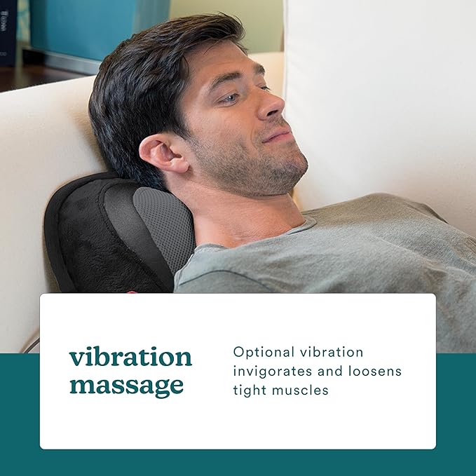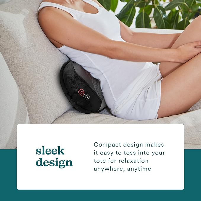 Homedics Back and Neck Massager, Portable Shiatsu All Body Massage Pillow with Heat, Targets Upper and Lower Back, Neck and Shoulders. Lightweight for Home, Office, Travel (Black)
