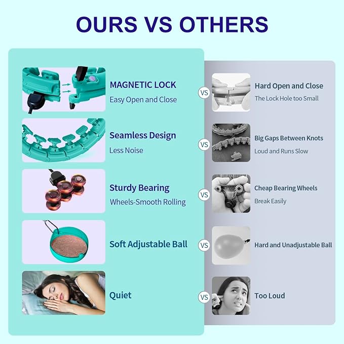 - EXCLUSIVE CUSTOM COLORS, HIGH QUALITY| We have multiple exclusive custom beautiful colors to fit your taste. Our product is the only hoop that has magnetic lock, adjustable weight ball and multiple custom colors. Sturdy, lightweight construction with high-quality ABS plastic.