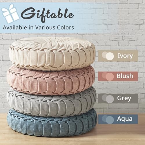 - LUXE - The Loretta Floor cushion is a large floor pillow featuring soft & lustrous chenille button tufted design and is adorned chic pleated finish, providing a luxurious look and quality feel; paired with skin friendly poly-filling for cozy comfort