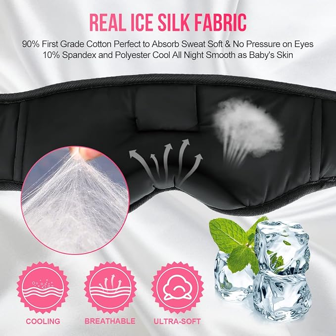 - COMFORTABLE, LIGHTWEIGHT & EYE-PRESSURE FREE: Made with premium memory foam and smooth ice silk lining, this sleep mask is breathable, skin-friendly, and lightweight; designed to relieve facial pressure, it feels almost weightless, allowing you to fall asleep quickly and wake up refreshed without the discomfort of bulky masks
