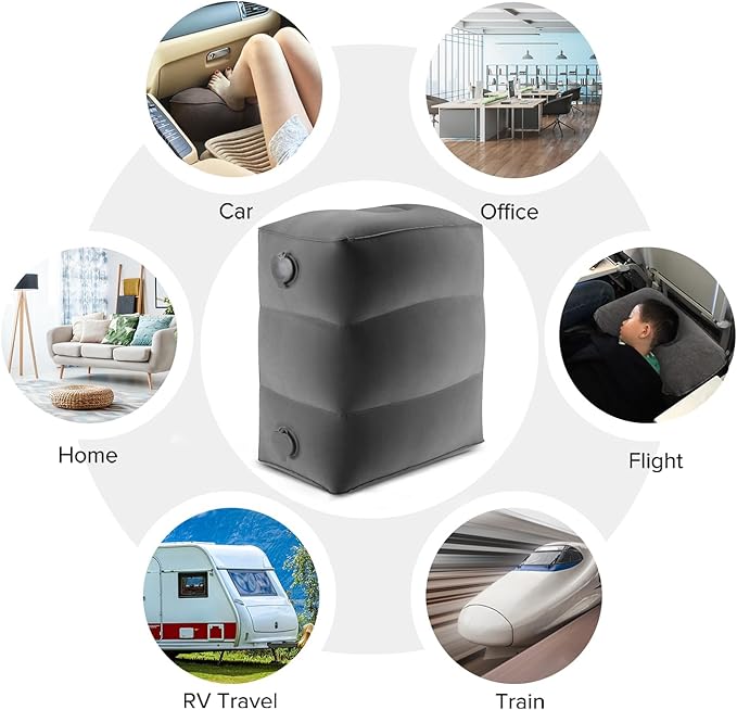 Maliton Inflatable Travel Foot Rest Pillow, Airplane Bed for Kids, Car Foot Leg Rest Pillow, Adjustable Height for Airplane, Car, Train, Home, Office(Dark Grey, 1 Pack)