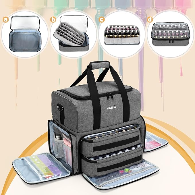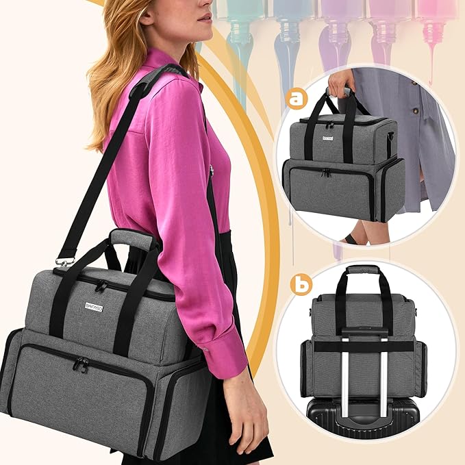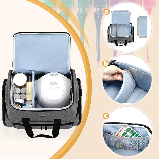 - OTHER TOOL STORAGE SECTIONS - 2 side pockets provide roomy space for dip powders and other manicure tools. There is also an adjustable shoulder strap and 2 sturdy handles for easy carrying.