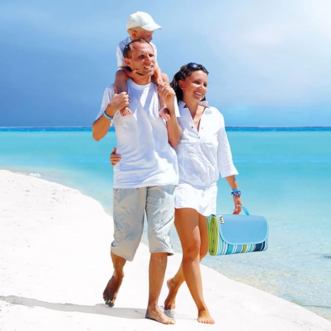 K Y KANGYUN Beach Blanket Outdoor Picnic Blankets Mat 80"x60" Extra Large Waterproof Sand Proof Camping Blanket Lightweight Folding Portable Travel Blanket for Family Park Beach Grass (Blue Line)