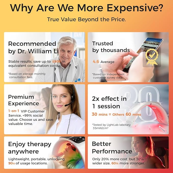 - Exclusive Light Therapy Experience: No need to spend a fortune or confine yourself busy to spas and clinics. Get away from the hustle and bustle; Start your relaxation journey anytime, anyplace with professional-grade LED red light therapy at home. The led face mask light therapy is equipped with a multifunctional touch screen and modular design, giving you complete control over your experience.