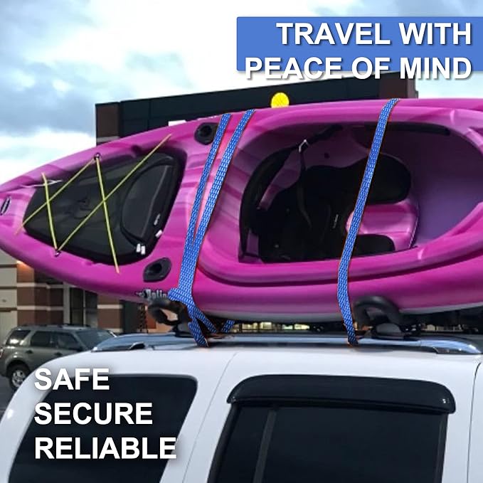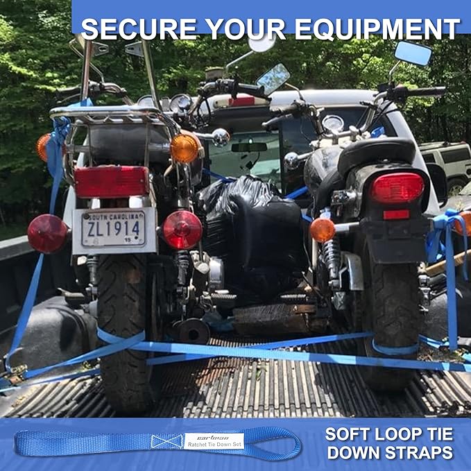 - 1 inch 15 Feet ratchet straps tie downs provides durable and dependable security for cargo transporting for motorcycle, canoe, kayak, ATV, boxes, boats, furniture, lawn Equipment, heavy machinery, other cargo via truck bed, trailer or roof rack.