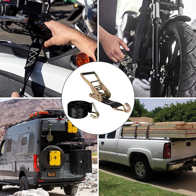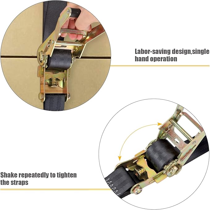 - 【Easy to Use】Ratchet with their user-friendly design, the car strapping belt tensioner is easy to operate. Simply pull the strap tight using the ratcheting mechanism to secure your cargo firmly. When it's time to unload, the straps can be released instantly with the quick-release lever, making the unbinding process quick and hassle-free. Tie down straps are perfect for various applications, including moving, securing cargo, or other tie-down needs.
