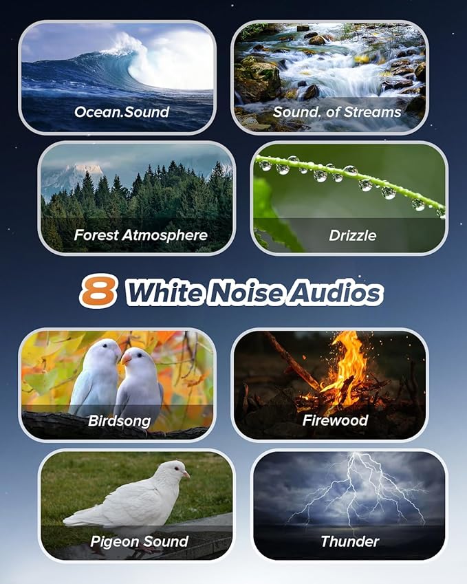 - 【Sleep Listening to Soothing White Noise】Sleep mask with bluetooth headphones perfectly combines Bluetooth 5.2 sleep eye mask with white noise. With 8 built-in relaxing white noise sounds, Select white noise mode, and you can enjoy nature sounds without connecting your Bluetooth to get good sleep