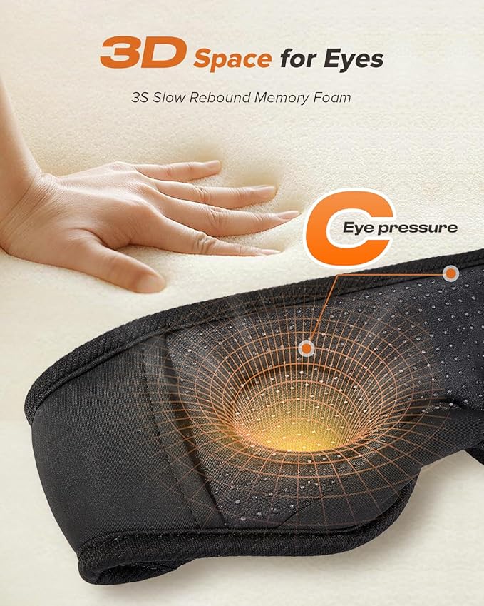 - 【Block Out Light Perfectly】sleeping eye mask has full coverage and uniquely designed of the nose area, effectively blocking light from entering, helping you to solve the problem of light disturbance when falling asleep. The upgraded 3D contoured design has a deeper contour in the eye area, allowing your eyes to move freely and without any pressure