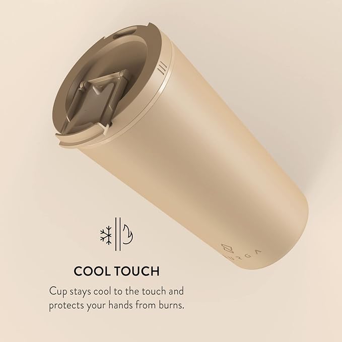 BURGA Stainless Steel Insulated DRINKING_CUP, Travel Spill-Proof With Secure-Seal, Scratch-Resistant, Stays Hot or Cold & Anti-Slip, 16 Ounces, Tan