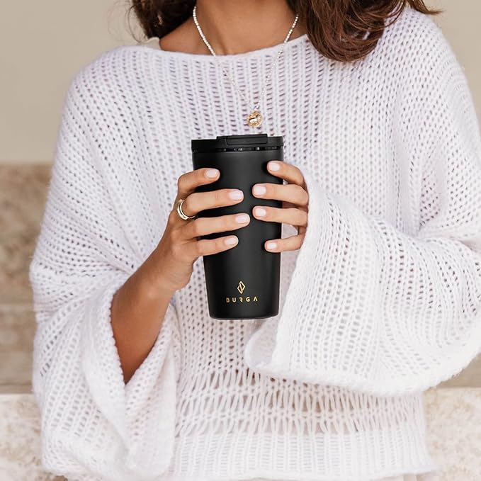 BURGA Travel Mug (16oz) Spill-Proof, Insulated Coffee Mug Scratch-Resistant, Stainless Steel Anti-Slip Tumbler Black
