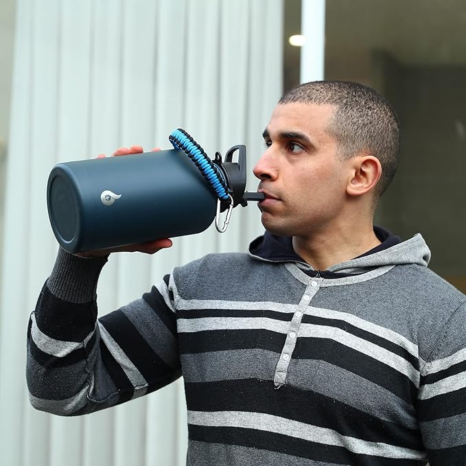 - FULLY EQUIPPED: We have equipped a flip straw lid, an easy twist spout lid, and a portable handle lid for 64 oz insulated sports water bottle to meet your needs in different scenarios. With a paracord handle, you can carry it in a comfortable and fashionable way. 2 straws,1 straw brush and dishwasher safe design help you clean it easily