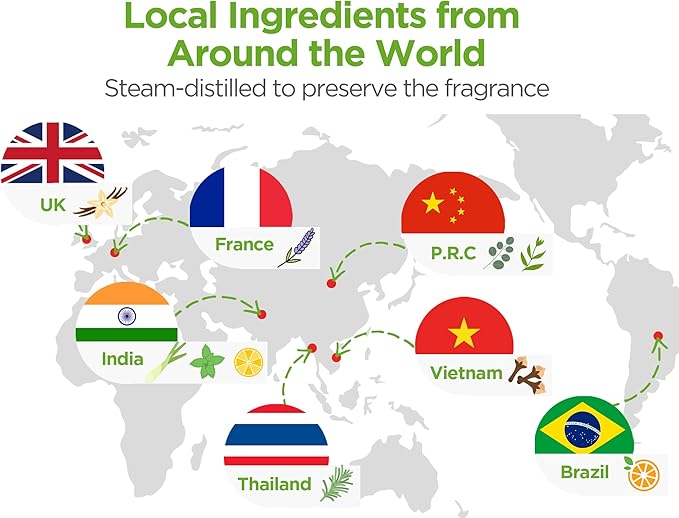 - 10 Essential Oils Available: It includes peppermint, orange, lavender, tea tree, rosemary, eucalyptus, lemongrass, lemon, clove, and vanilla, 100% pure and natural and 10ml for each bottle. Select one scent and use with the diffuser to fill your space with moisture and fragrance, freshen your breathing and relax your mind. With a nice package, this aromatherapy diffuser and 10 scents essential oil set is a great gift idea for any holiday.