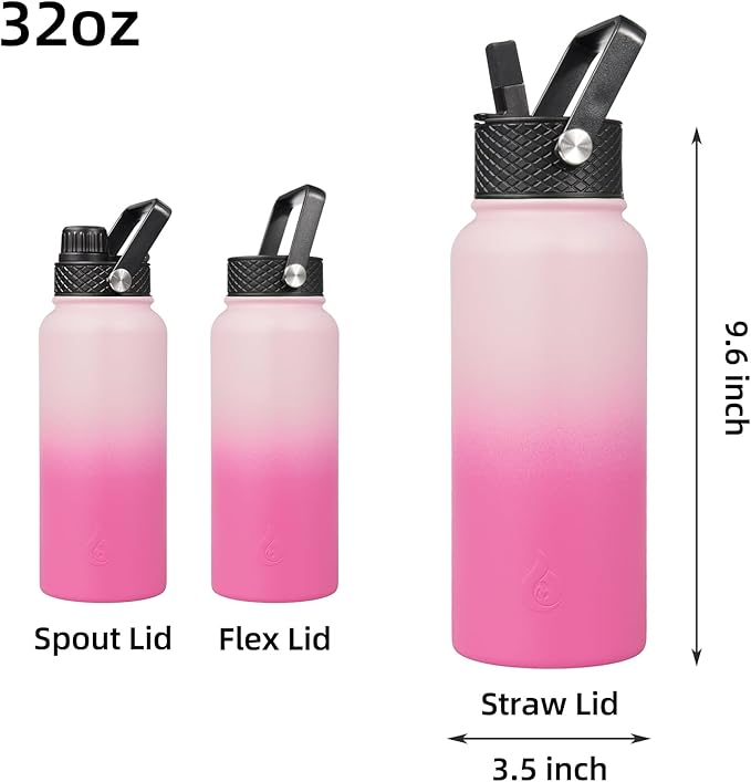BJPKPK Insulated Water Bottles with Straw Lid, 32oz Metal Large Water Bottle with 3 Lids, Reusable Leak Proof BPA Free Thermo, Stainless Steel Tumblers for Sports, Gym, Travel-Cherry