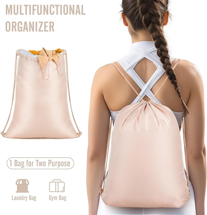 - Multi-purpose Travel Essential: Includes a hanging toiletry bag with 5 compartments for organizing toiletries and cosmetics, featuring a convenient hanging design. The versatile laundry bag holds up to 9 garments and transforms into a backpack, perfect for all your travels.
