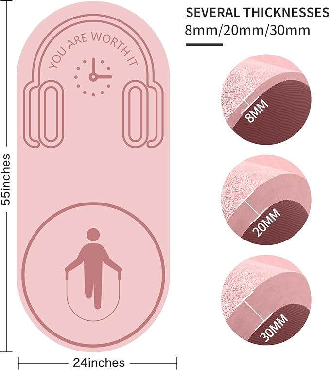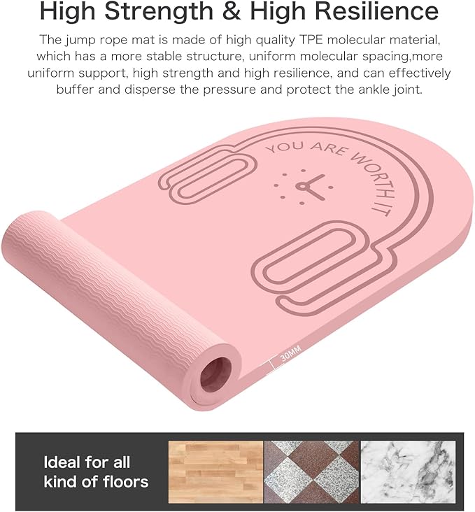 8/20/30mm Jump Rope Mat Fitness Exercise Mat Durable, Non-Slip, Workout Mats with Jump Rope & Carrying Bag for Home Gym Flooring (55"x 24")
