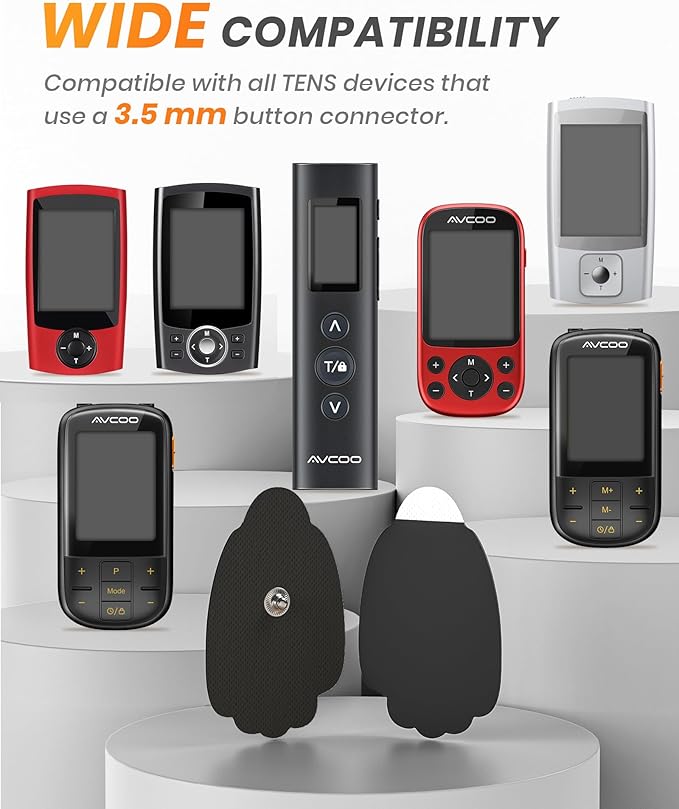 - 20-Pack Pads: AVCOO palm-shaped TENS Pads fit all TENS/EMS devices (except for wireless TENS unit) that use snap-on connector (3.5mm) leads, and perfectly match your elbow, knee, shoulder, back, etc.