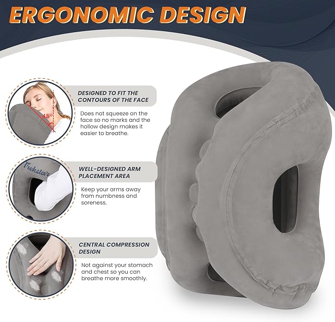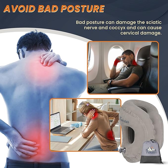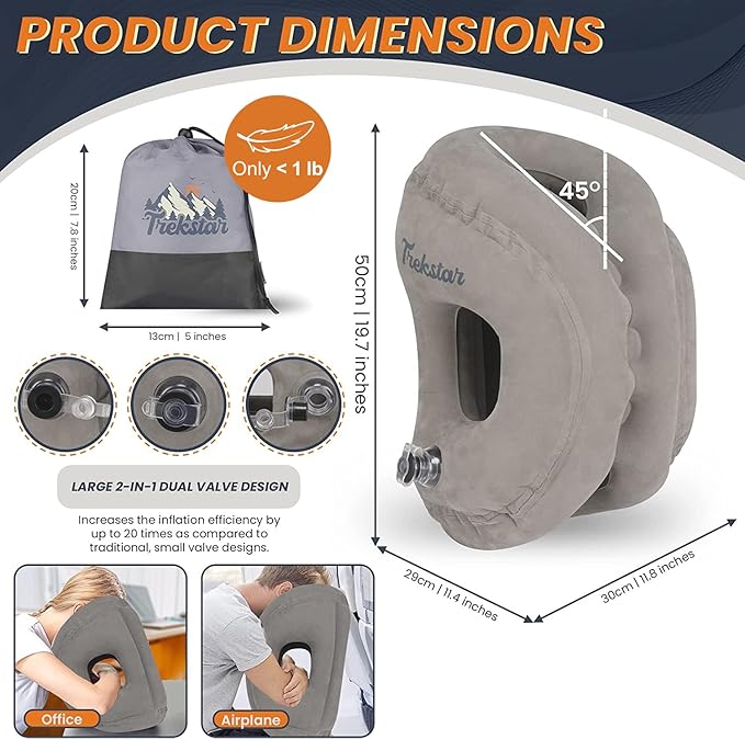 - Ergonomically Engineered for Restful Sleep: The unique, ergonomic design of TrekStar's Inflatable Pillow promotes better air circulation and caters to different sleeping positions. It supports a natural forward sitting posture, relieving pressure from your neck and cervical spine, and helping to prevent numbness, injury, and sleep disruptions commonly associated with long journeys.
