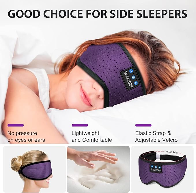 - 【Excellent Stereo Sound Quality】TOPOINT Sleeping Headphones Has True HD high fidelity sound featuring latest Bluetooth 5.4 technology that produce great sound quality and easily pairs with smartphones, computers, and most other Bluetooth compatible devices. Please you can move the position of the speakers to fit ears before use.