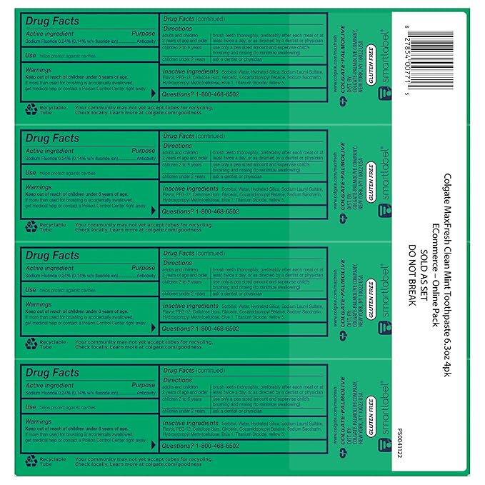 - Includes four 6.3 oz tube of Colgate MaxFresh Clean Mint Toothpaste