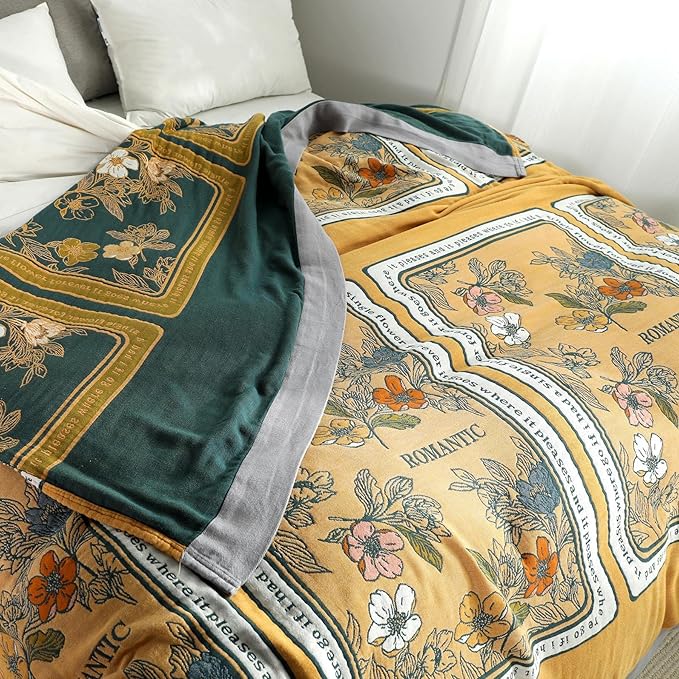 Boho Throw Blanket for Bed 100% Cotton Ultra Soft Rustic Quilt Fall Blanket Floral Printed Farmhouse Decor Bed Blankets,60"×80" All Season Rustic Throw for Sofa Couch Chair
