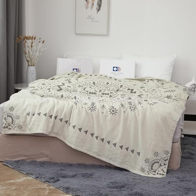 Boho Throw Blanket for Bed 100% Cotton Ultra Soft Rustic Quilt Fall Blanket Geometric Mandela Printed Farmhouse Decor Bed Blankets,60"×80" All Season Rustic Throw for Sofa Couch Chair