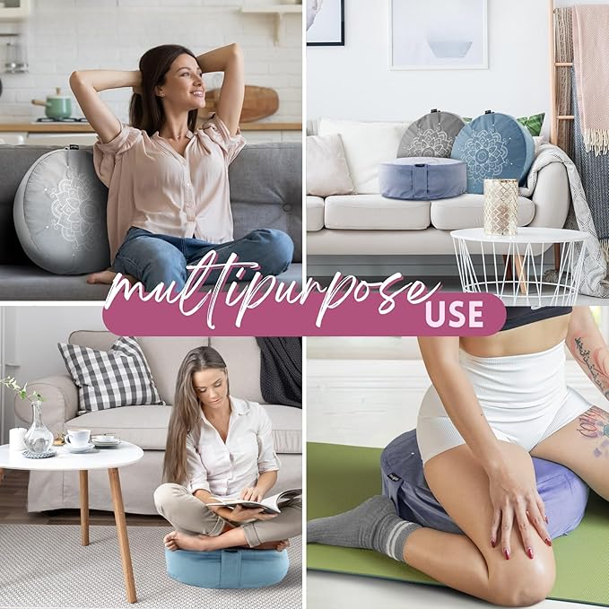 - COMFORT FOR LONG SESSIONS: Our double cushions and meditation floor pillows are designed to support your posture during extended sitting with ergonomic floor seating and floor pillows for adults; Enjoy peaceful meditation with our yoga seat pillow