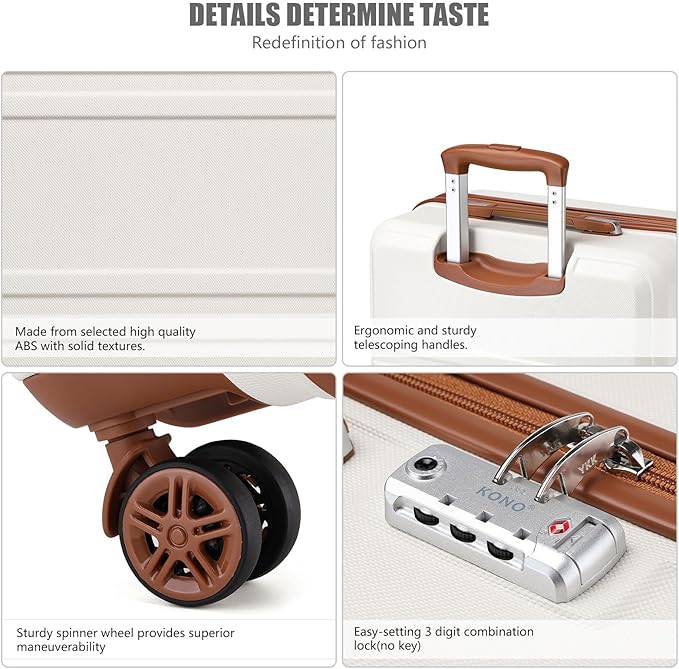 - 【DURABLE + 2-YEAR LIMITED WARRANTY】Made from a protective, lightweight hardside ABS shell, this luggage is scratch-resistant, pressure-resistant, dirt-proof, and waterproof. Each Kono luggage undergoes extremely strict quality control test standards to ensure that our products can endure the harsh conditions of modern transportation. Moreover, Kono offers a reliable 2-year limited warranty service!