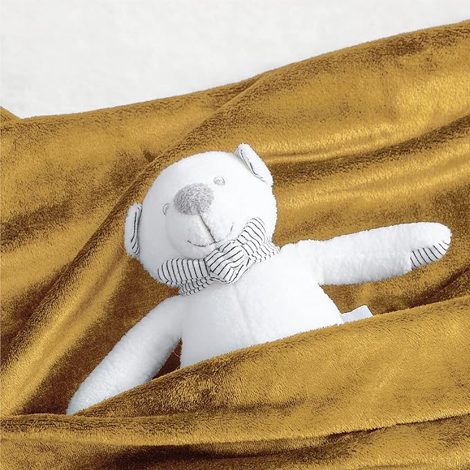 Bedsure GentleSoft Bedding Fleece Blanket for Girls and Boys - Soft Cozy Cute Small Throw Blankets for Travel, 43x55 Inches, Gold
