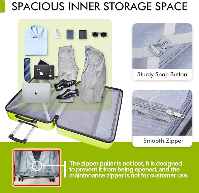- [Larger storage space] We have adopted a more scientific structure design to maximize the use space in the box, and reasonable internal partitions make your luggage more tidy and can accommodate more.