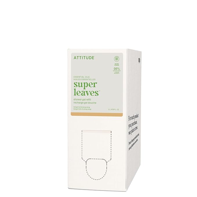 ATTITUDE Body Wash with Essential Oils, EWG Verified Shower Gel, Dermatologically Tested, Plant and Mineral-Based, Vegan Personal Care, Bergamot and Ylang Ylang, Bulk Refill, 67.62 Fl Oz