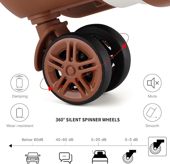 - 【CARRY ON LUGGAGE WITH LOCK + WHEELS】Features a side-mounted TSA lock and smooth YKK zippers for added security, ensuring only you or TSA agents can access your belongings. With multi-directional spinner wheels for 360° effortless mobility, it’s lightweight and designed to reduce strain on your wrists, making travel smoother and more convenient.