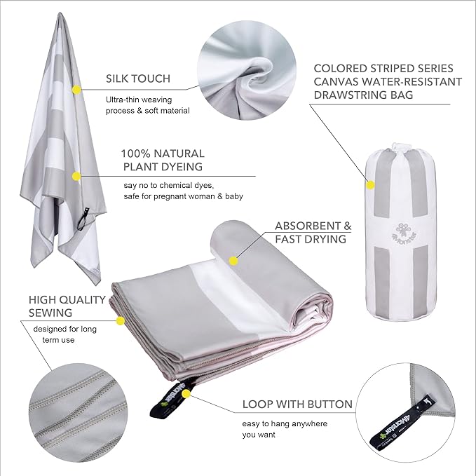 - 【100% Sand Free】Designed for beaches and camping,engineered to repel sand, ensuring that sand grains won't stick to the towel. After use, simply shake off the towel, and sand will easily fall off, making it hassle-free to clean.