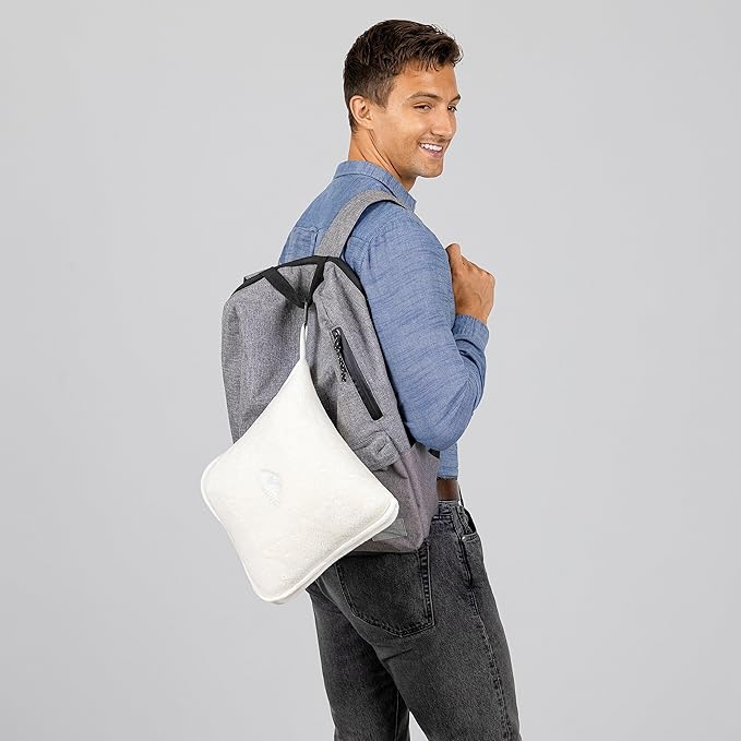 - Hand Luggage Belt and Carabiner for Portability: This innovative air travel blanket comes with a backpack clip that can be clipped to your backpack, handbag or any other hand luggage. Also, it comes with a hand luggage strap in the pillowcase that can be easily attached to your suitcases as well as other luggage items. These built-in travel accessories make carrying this portable blanket easier.