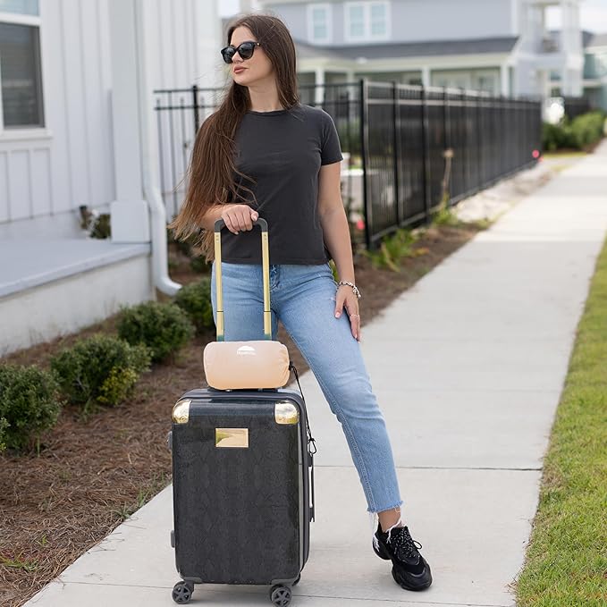 - Lightweight travel throw blanket – An Airplane travel essential: Snuggle up with our plane travel blanket for a high level of comfort and can be used as a throw blanket while watching a movie. There are beautiful color options to choose from. This beige compact travel blanket is one of the must have travel essentials to keep you well rested on the go.